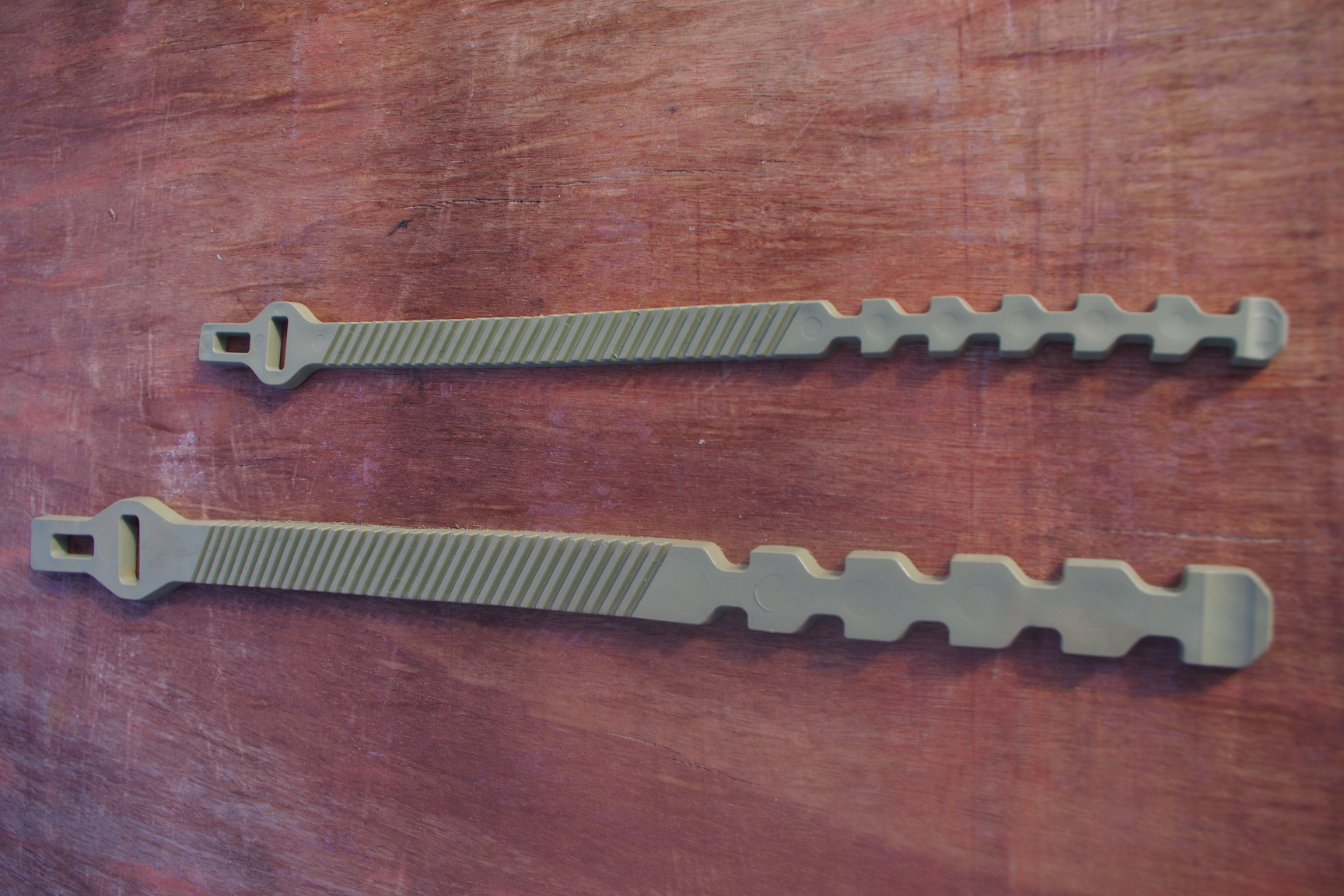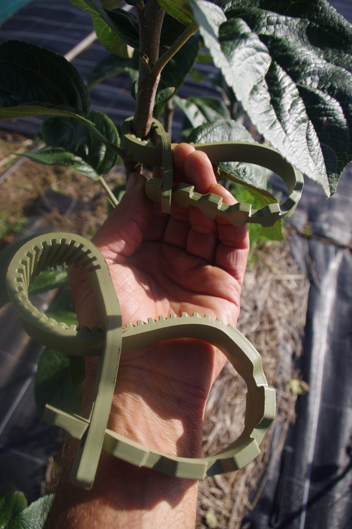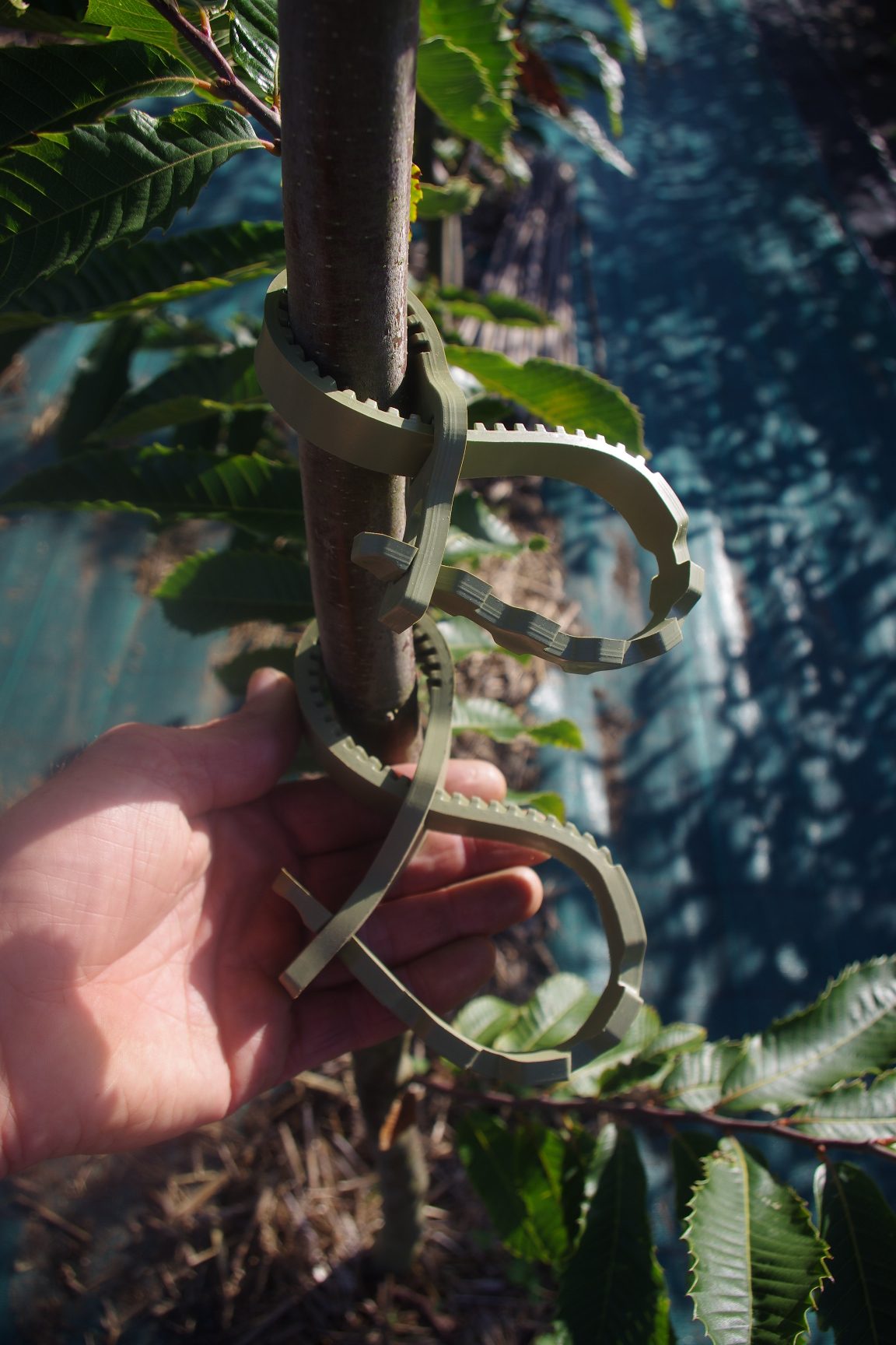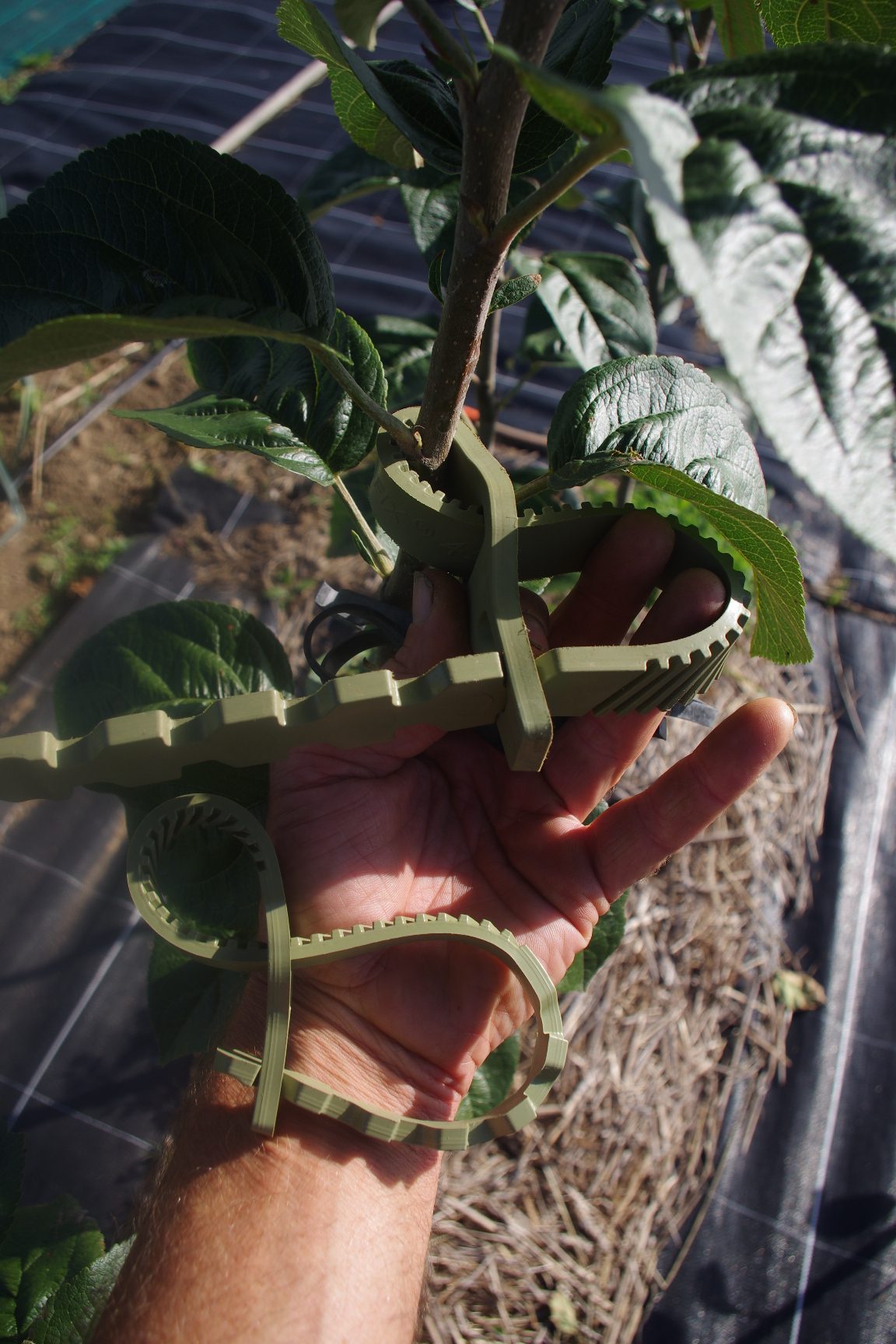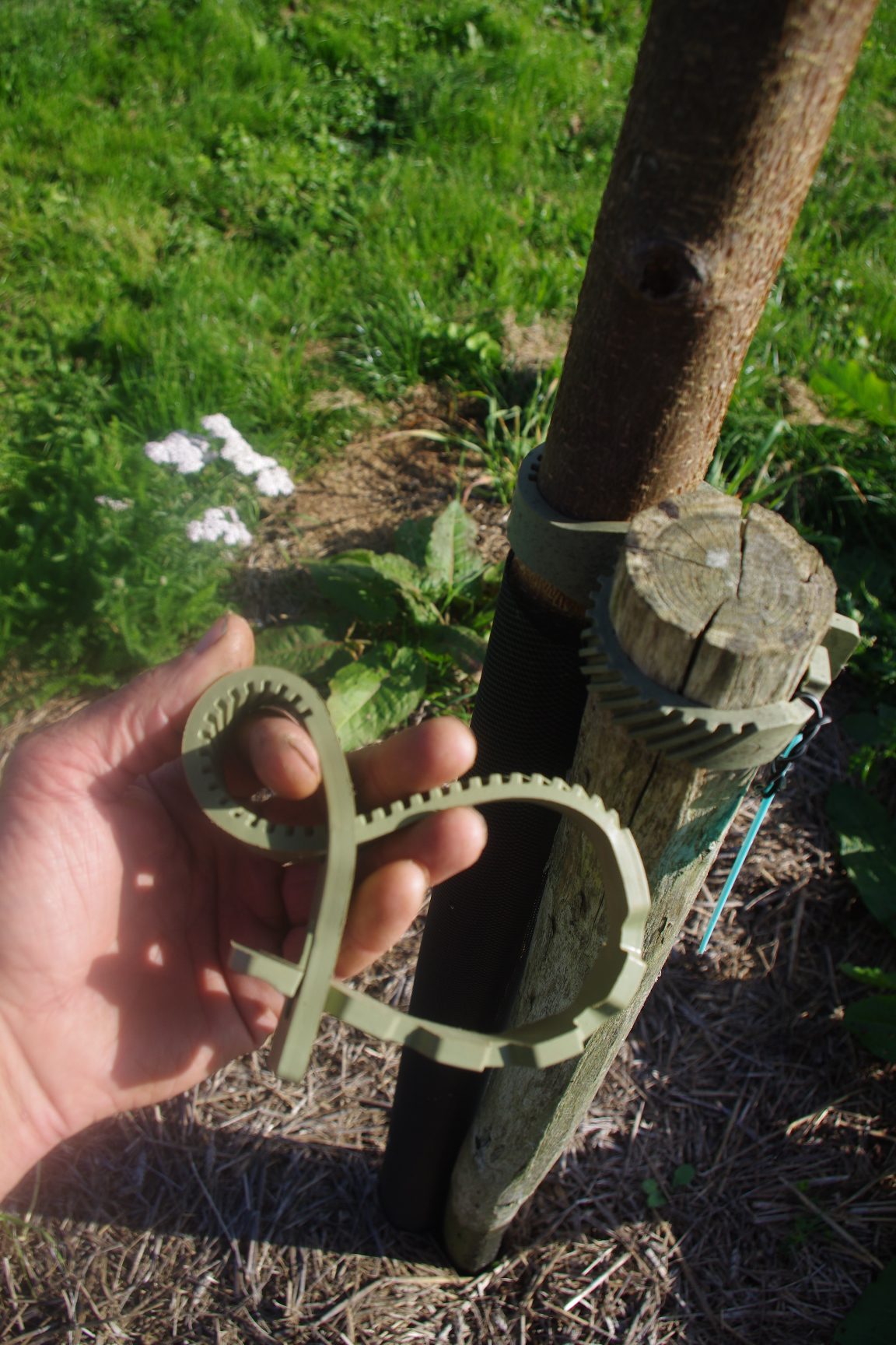 Longeur 35 : 5 crans de réglage, largeur = 16mm . Convient généralement aux jeunes arbres de 1 et 2/3ans avec tuteur de 4 à 7 cm de diamètre.